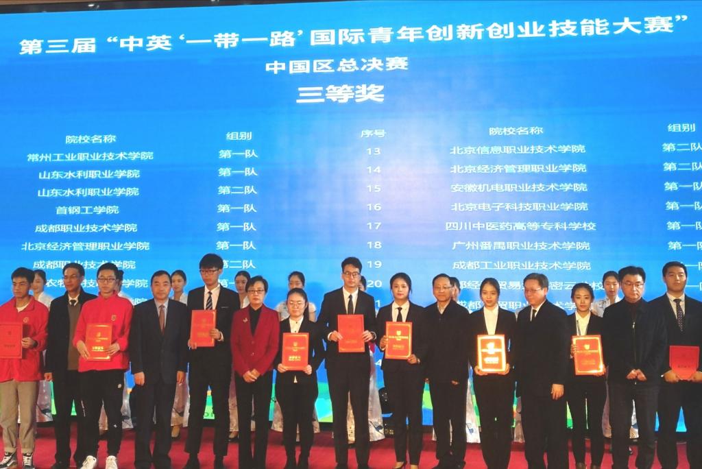2019年12月28-29日,第三届“中英‘一带一路'国际青年创新创业技能大赛”中国区总决赛在湖北省武汉市举行,我校公共卫生管理专业学生团队代表西南赛区喜获大赛三等奖,这也是全国唯一获奖的医药类高等职业院校;我校同时荣获“优秀院校组织奖”。