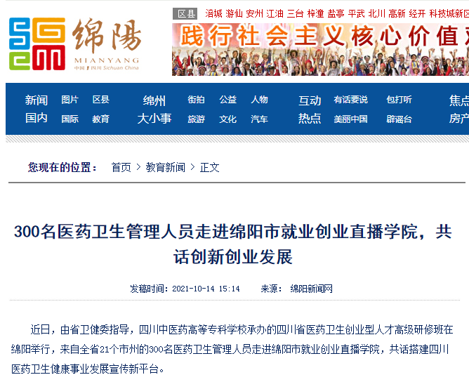 下一条:中国新闻网:300名医药卫生管理人员走进绵阳直播学院共话创新创业发展