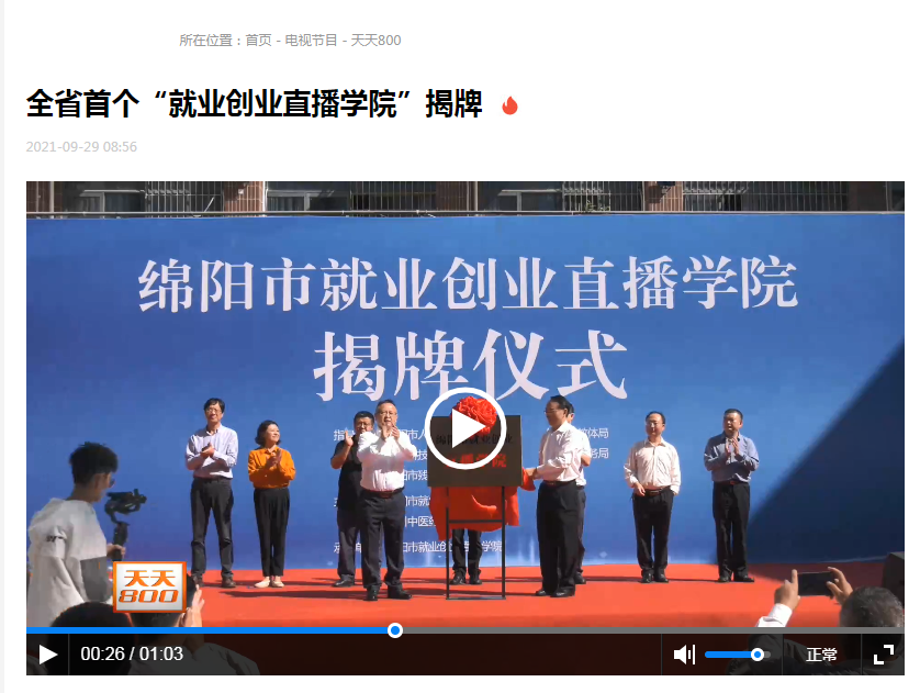 【导语】昨天(9月28日)上午,绵阳市就业创业直播学院在四川中医药高等专科学校揭牌。该院也是全省首个就业创业直播学院。