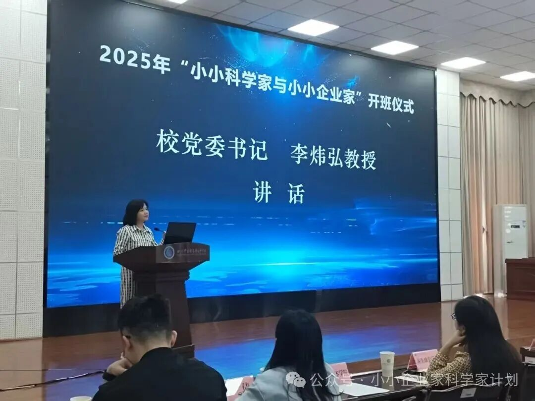 党委书记李炜弘首先致辞,她代表学校向入选新一期培训班的全体学员表示热烈祝贺。李书记深刻阐述了创新创业教育对于新时代大学生成长成才的重要意义,并寄语新学员要珍惜平台、勇于探索、勤于实践、学有所成,希望同学们能在这片沃土上,将奇思妙想转化为扎实的成果,为未来的发展奠定坚实基础。
