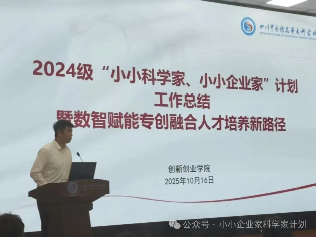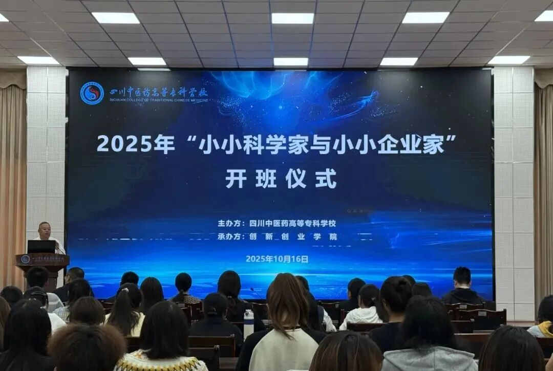 2025年10月16日下午14时,四川中医药高等专科学校南区综合楼五楼会议室气氛热烈,2025级“小小科学家”与“小小企业家”培训班开班仪式在此隆重举行。学校党委书记李炜弘、党委副书记商碧辉、相关部门及二级学院负责人、新老学员及优秀校友代表齐聚一堂,共同见证了这一重要时刻。仪式由校党委副书记商碧辉主持。