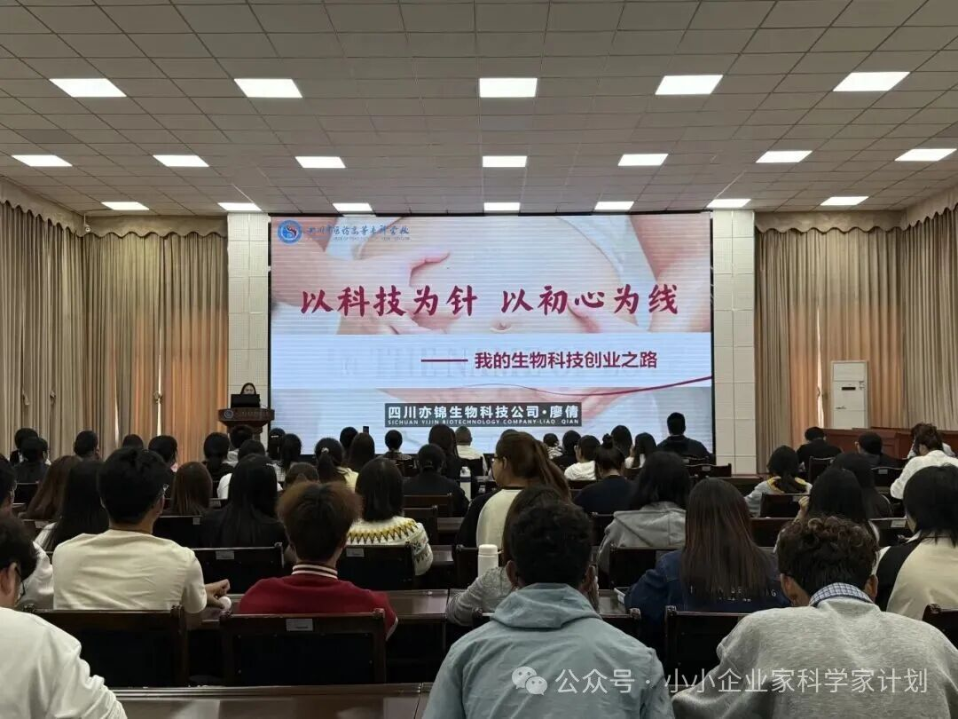 •廖倩(2025届护理学院毕业生,四川亦锦生物科技有限公司总经理)以 《以科技为针,以初心为线》 为题,讲述了如何将专业所学与市场需求相结合,坚守初心,走出了一条精彩的科技创业之路。